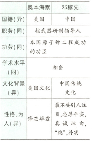 2.找出文中表现邓稼先与奥本海默两人不同性格、为人的词语及细节,思考作者为什么要进行对比,通过对比得出了怎样的结论。