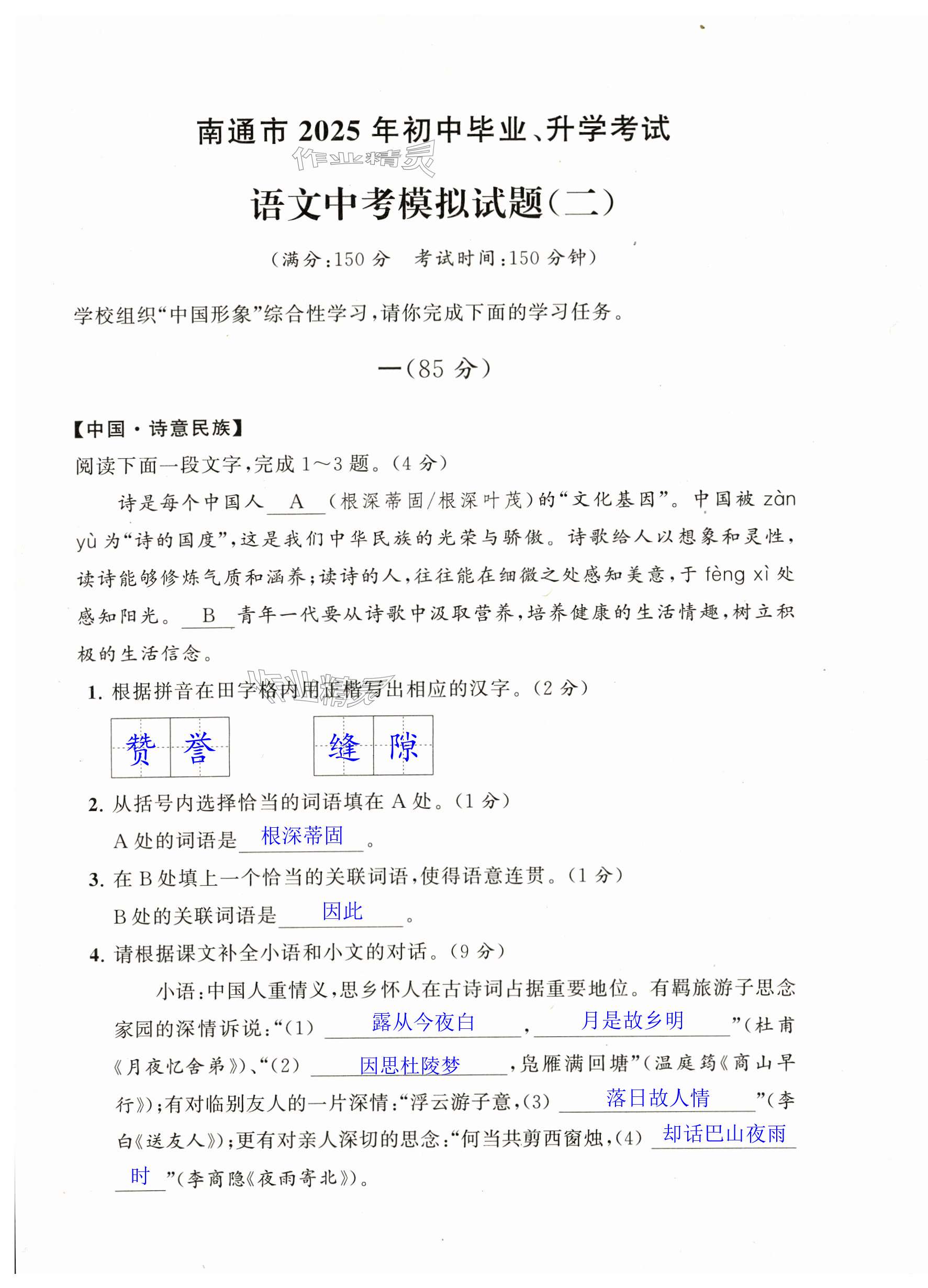 注:目前有些书本章节名称可能整理的还不是很完善,但都是按照顺序排列的,请同学们按照顺序仔细查找。练习册 2025年全优夺冠中考模拟卷语文 答案主要是用来给同学们做完题方便对答案用的,请勿直接抄袭。