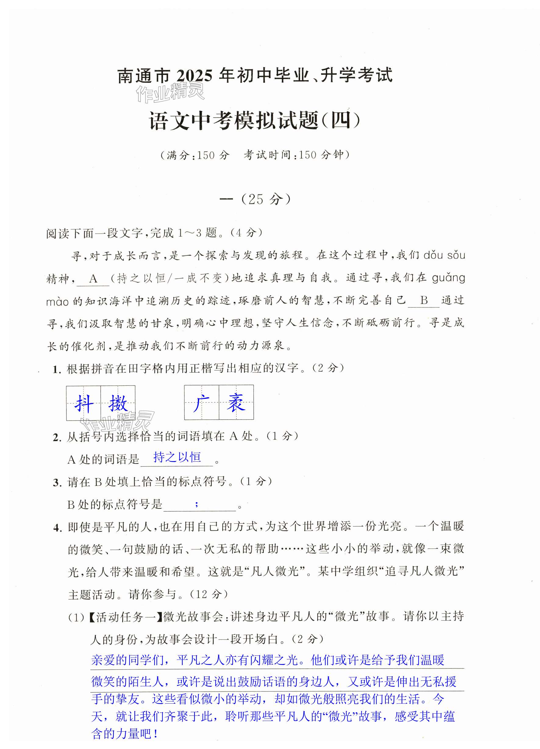 注:目前有些书本章节名称可能整理的还不是很完善,但都是按照顺序排列的,请同学们按照顺序仔细查找。练习册 2025年全优夺冠中考模拟卷语文 答案主要是用来给同学们做完题方便对答案用的,请勿直接抄袭。