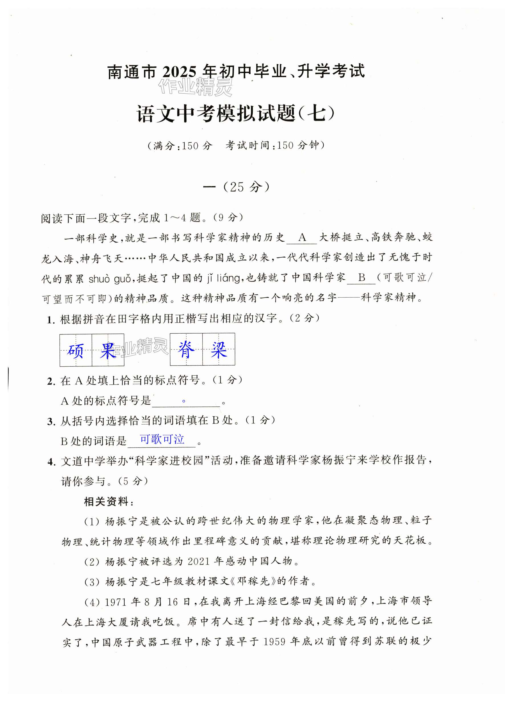 注:目前有些书本章节名称可能整理的还不是很完善,但都是按照顺序排列的,请同学们按照顺序仔细查找。练习册 2025年全优夺冠中考模拟卷语文 答案主要是用来给同学们做完题方便对答案用的,请勿直接抄袭。
