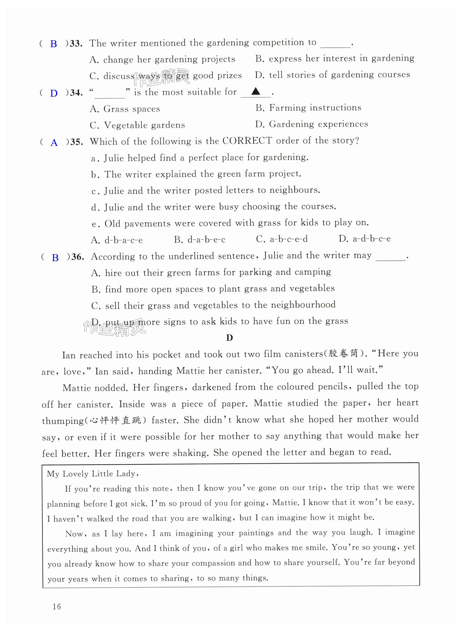 注:目前有些书本章节名称可能整理的还不是很完善,但都是按照顺序排列的,请同学们按照顺序仔细查找。练习册 2025年全优夺冠中考模拟卷英语 答案主要是用来给同学们做完题方便对答案用的,请勿直接抄袭。