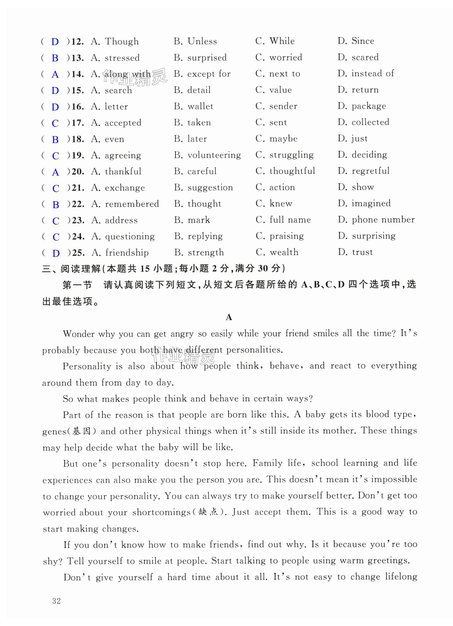 注:目前有些书本章节名称可能整理的还不是很完善,但都是按照顺序排列的,请同学们按照顺序仔细查找。练习册 2025年全优夺冠中考模拟卷英语 答案主要是用来给同学们做完题方便对答案用的,请勿直接抄袭。