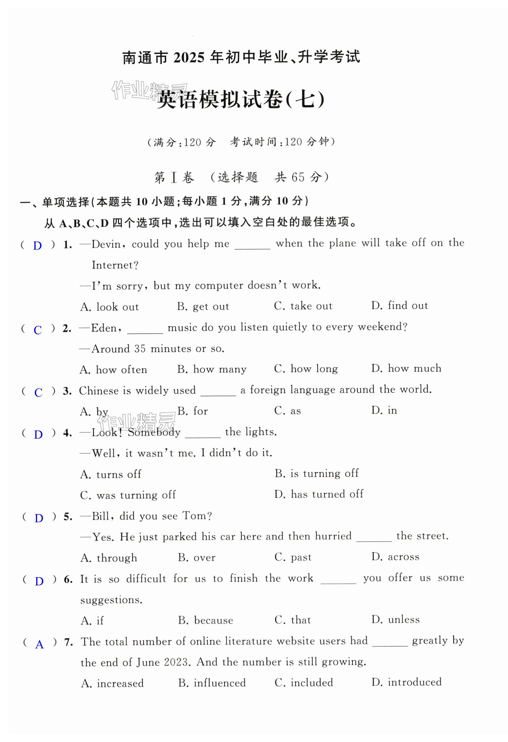 注:目前有些书本章节名称可能整理的还不是很完善,但都是按照顺序排列的,请同学们按照顺序仔细查找。练习册 2025年全优夺冠中考模拟卷英语 答案主要是用来给同学们做完题方便对答案用的,请勿直接抄袭。