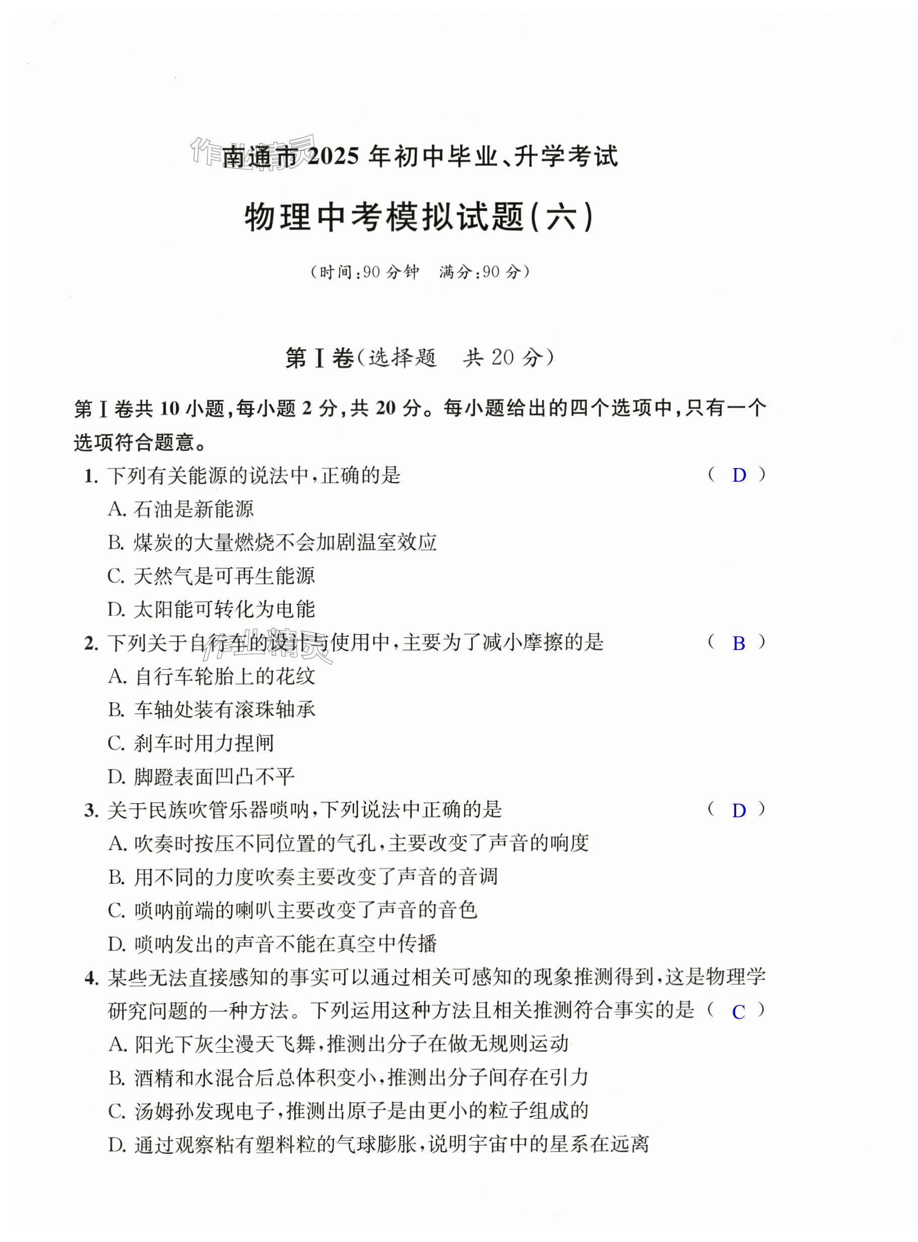 2025年全优夺冠中考模拟卷物理化学