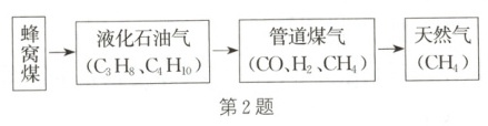 2. 合理利用化石燃料资源,是人类不断探索的课题。家用燃料的使用经历了如图所示的过程,并将逐步向理想燃料发展。
