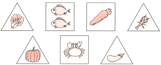 蔬菜:________________ ( )种 海鲜:______________ ( )种
