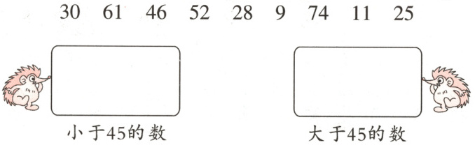 小于45的数:30 28 9 11 25 大于45的数:61 46 52 74