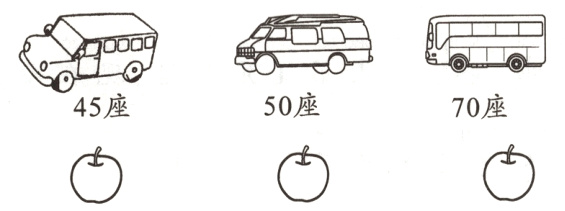 三、一(2)班共有47人去秋游,选择哪辆车最合适?把正确答案下面的“$\bigcirc$”涂上颜色。