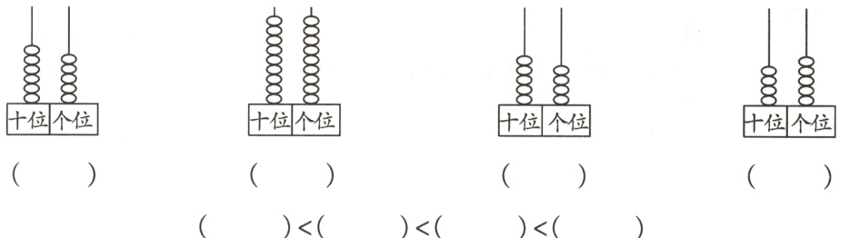 四、在计数器上拨6颗珠子,可以表示的两位数中,最大的是( ),最小的是( )。