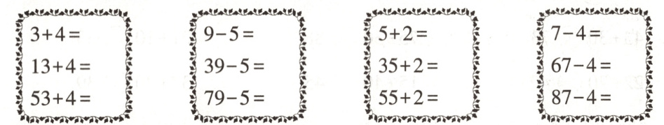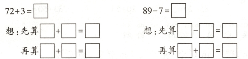 我发现:计算两位数加、减一位数(不进位、不退位),先用( )数位上的数去加减,再把几个十和几个一合起来。