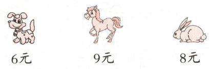 三、用20元买一个玩具狗,应找回多少元?买一个玩具马或一个玩具兔呢?