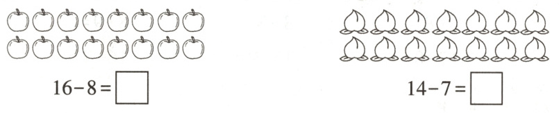 13 - 8 = ____ 15 - 8 = ____ 16 - 7 = ____ 14 - 8 = ____