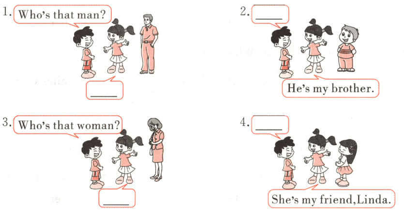 A.Who's that girl? B.He's my dad.