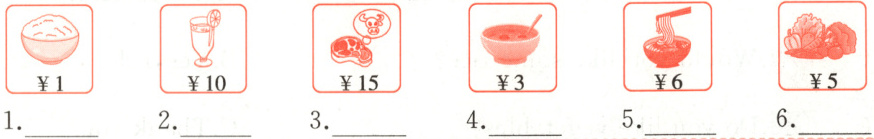 六、请帮学校餐厅完成菜单吧!根据图片选择相应的内容,将其序号填在横线上。