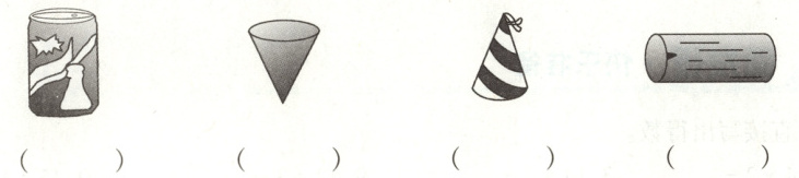 5. 下面物体的形状,是圆柱的画“○”,是圆锥的画“△”。
