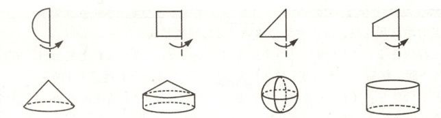 7. 用纸片和小棒做成下面的小旗,快速旋转小棒,把纸片旋转所形成的图形与下面对应的图形连一连。