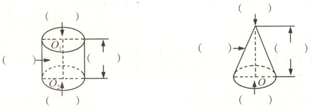 6. 在下图中,标出圆柱和圆锥各部分名称。