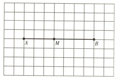 5. 如图,点M是线段AB上的一点,画出线段AB绕点M顺时针旋转90°后的线段,再将线段向左平移4格画出来。