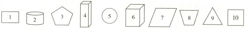 (1) 平面图形有 ( )。 (2) 立体图形有 ( )。