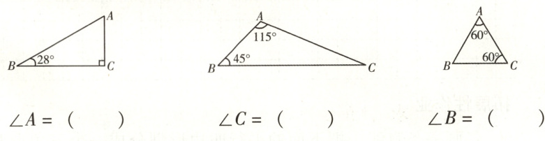 (2) 一个直角三角形,已知其中一个锐角是35°,另一个锐角是 ( )。