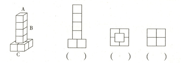 5. 下面各图形分别是小红在什么位置看到的?(A为上面,B为右面,C为下面)