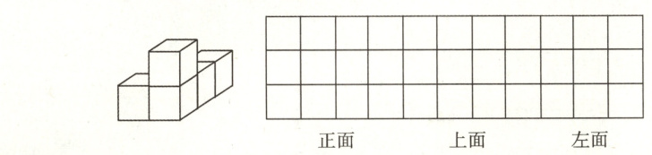 4. 下面的立体图形从正面、上面、左面看到的形状分别是什么?请在方格纸上画出来。