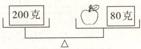 3. 由右图可知,天平正好平衡,说明天平两边所放物体的质量相等,即200克 = ( )的质量 + ( ),如果用x表示苹果的质量,那么用式子表示天平中的等量关系是 ( )。