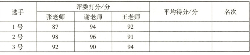 2. 下面是“新秀杯”少儿朗诵大赛成绩统计表,请把表格补充完整。