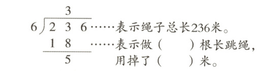 2. 有1捆236米长的绳子,每6米做1根长跳绳。