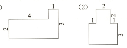(2)周长:$(3 + 2 + 1 + 2 + 1)\times2 = 18$(厘米)面积:$(1 + 2 + 1)\times3 + 2\times2 = 16$(平方厘米)