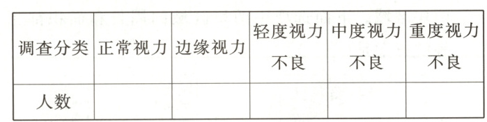(4)三(1)班一共有( )名同学,其中视力不良(含轻度、中度、重度)的同学一共有( )人。正常视力比边缘视力多( )人。(3分)