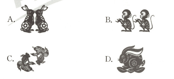 4. 传统文化 剪纸是中国的传统艺术。下面的剪纸图案中,可以利用轴对称剪出来的是( )。