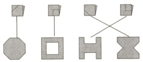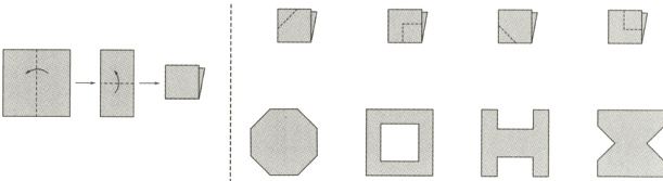 1. 将一张正方形纸按照如下方式对折后,剪一剪。把不同剪法和展开后分别得到的图案连一连。(8分)
