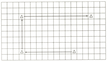 2. △是乌龟现在的位置,它先向左爬了9格,再向上爬了6格,最后向右爬了12格。请你用→和△在方格纸上表示出乌龟每次移动的路线和移动后的位置。(6分)