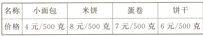 (2)1千克小面包比1千克米饼便宜多少元?(4分)