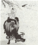 2.牧童骑牛晚归 牧童晚归休憩 3.牧童归去横牛背 短笛无腔信口吹 放牛的孩子横坐在牛背上,用短笛随意地吹着不成调的曲子 4.C