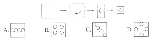 3. 推理意识 聪聪将一张正方形纸对折两次(如图),并在中间打孔后再将它展开,展开后的图形是( )。