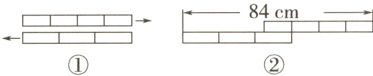 13. 有两个同样长的长方形按图①放置,现在将这两个长方形同时分别向左、右方向平移至图②,每个长方形的移动速度都为2厘米/秒,则每个长方形长( )厘米,这个平移过程需要( )秒。