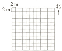 (2)在喷灌中心正东方向12米处做了一块标识牌(爱护花草),请在图中用点A标出这块标识牌的位置。(2分)
