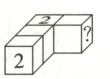 在把4个这样的小正方体一个挨着一个连接起来,紧挨着的两个面上的数字之和都等于8,那么图中带“?"的面上写的数字是( )。