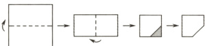 6. (空间观念)如图,将一张正方形纸片先由下向上对折压平,再由右翻起向左对折压平,得到小正方形ABCD。取AB的中点M和BC的中点N,剪掉三角形MBN,得五边形AMNCD。将折叠的五边形AMNCD纸片展开铺平后的图形是( )。