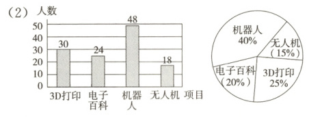 (3)今年参加3D打印项目的学生人数比去年增长了20%,去年参加该项目的学生有多少人?(3分)