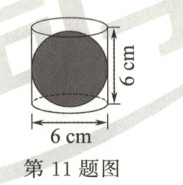 11. 右上图是一个“圆柱容球”模型,已知球与圆柱的体积之比是2:3,那么这个球的体积是( )立方厘米。