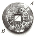2. 如图,一枚圆形古钱币的中间是一个正方形孔,已知圆的直径AB与正方形的对角线CD之比为3:1,则圆的面积约为正方形面积的( )。