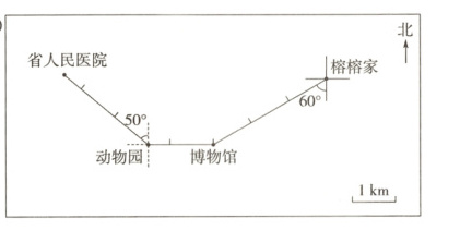 2.榕榕放学后感到不舒服,17:40妈妈带她去医院看病。妈妈用手机叫了网约车,很快网约车就到了榕榕家门口。网约车从家出发,先向南偏西60°方向行驶3千米到达博物馆,再向正西方向行驶1.5千米到达动物园,最后向北偏西50°方向行驶2.5千米到达省人民医院。