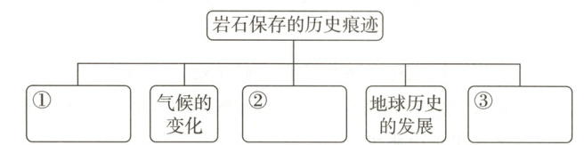 1. 趋势新题 第④~⑫自然段中,岩石保存了哪些历史痕迹?根据文章内容填一填。
