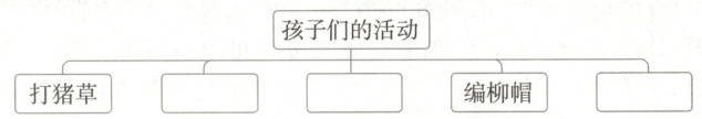 ⑤田里的草也不甘示弱地长起来,农人们并不恼。草是调皮的,一茬一茬,生生不息,好像在与人做着顽皮的游戏。那么,就让孩子们来对付这些不安分的草吧。