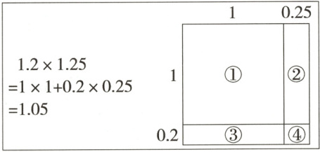 6. 算理理解 如图,笑笑这样来算“1.2×1.25”。智慧老人说这种算法有点问题,让笑笑用画图的方法来想一想,少算了( )。