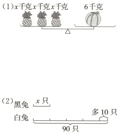 (1)$3x = 6$ $x = 2$ (2)$4x + 10 = 90$ $x = 20$