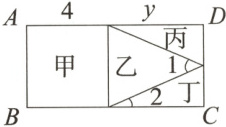 5. 如图,将一个长方形ABCD分割成甲、乙、丙、丁4块,根据图意填空。